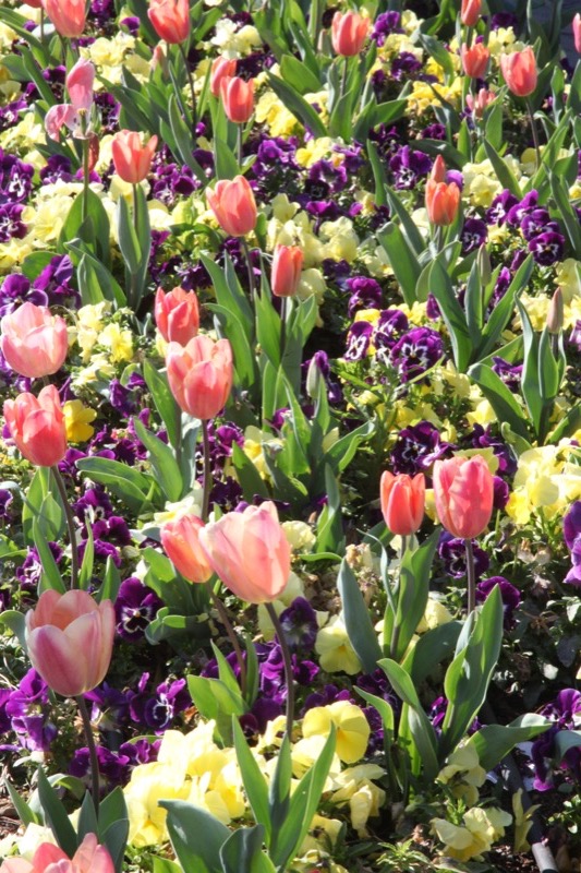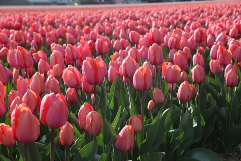 Ocean of pink and coral tulips.