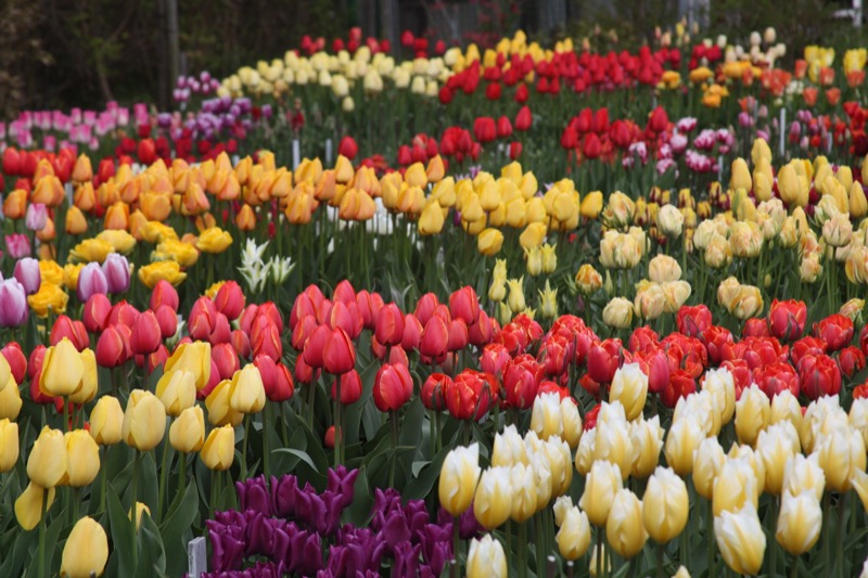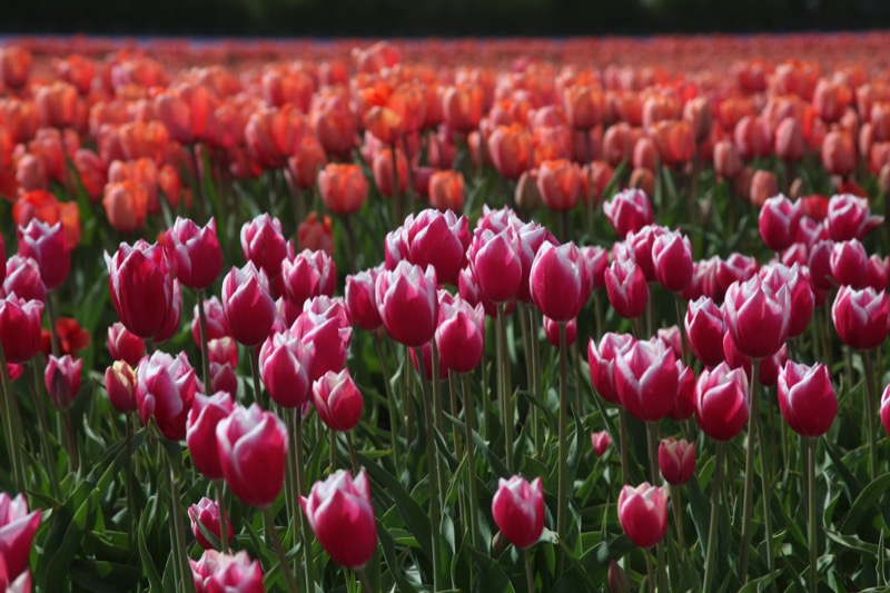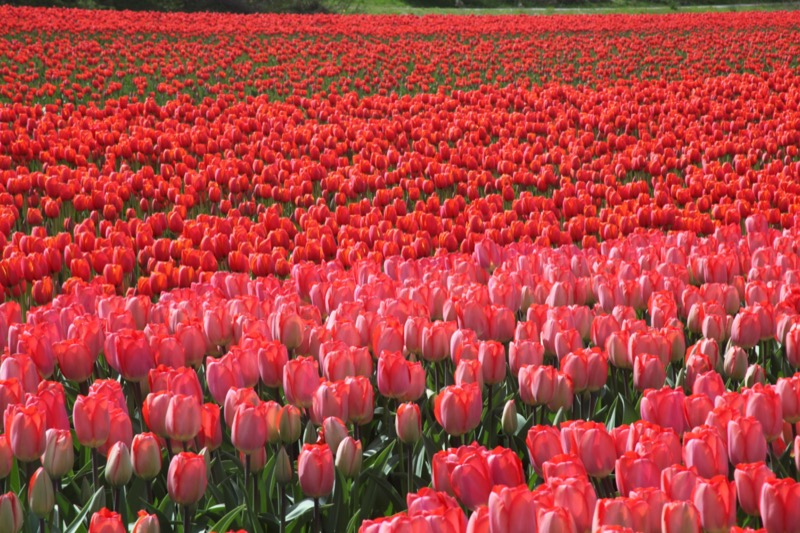 Ocean of red and pink tulips.