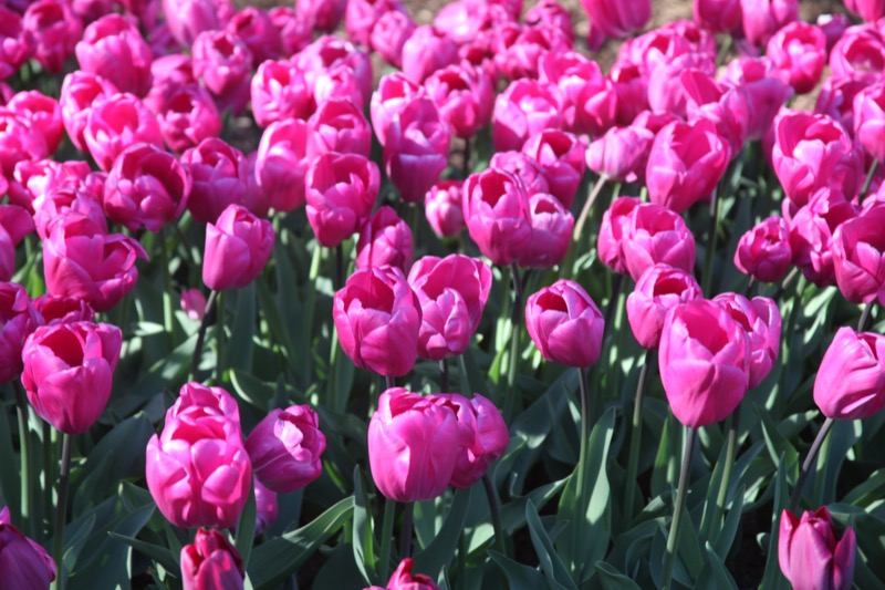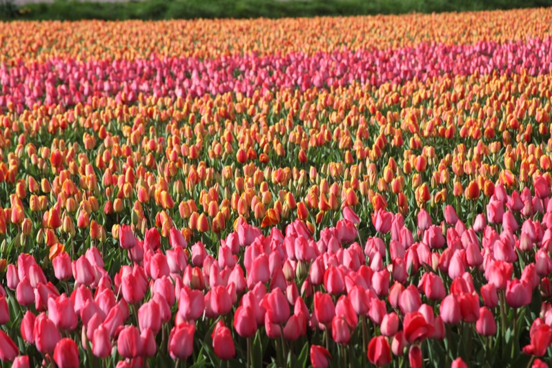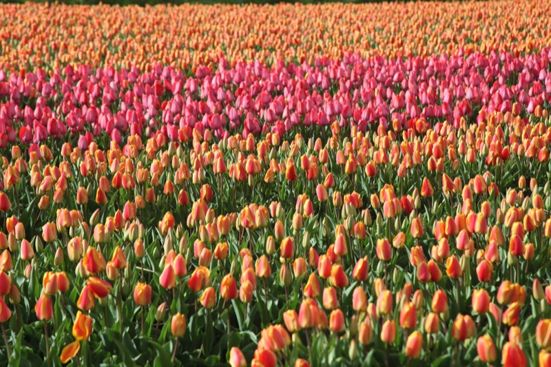 Ocean of pink and red tulips.